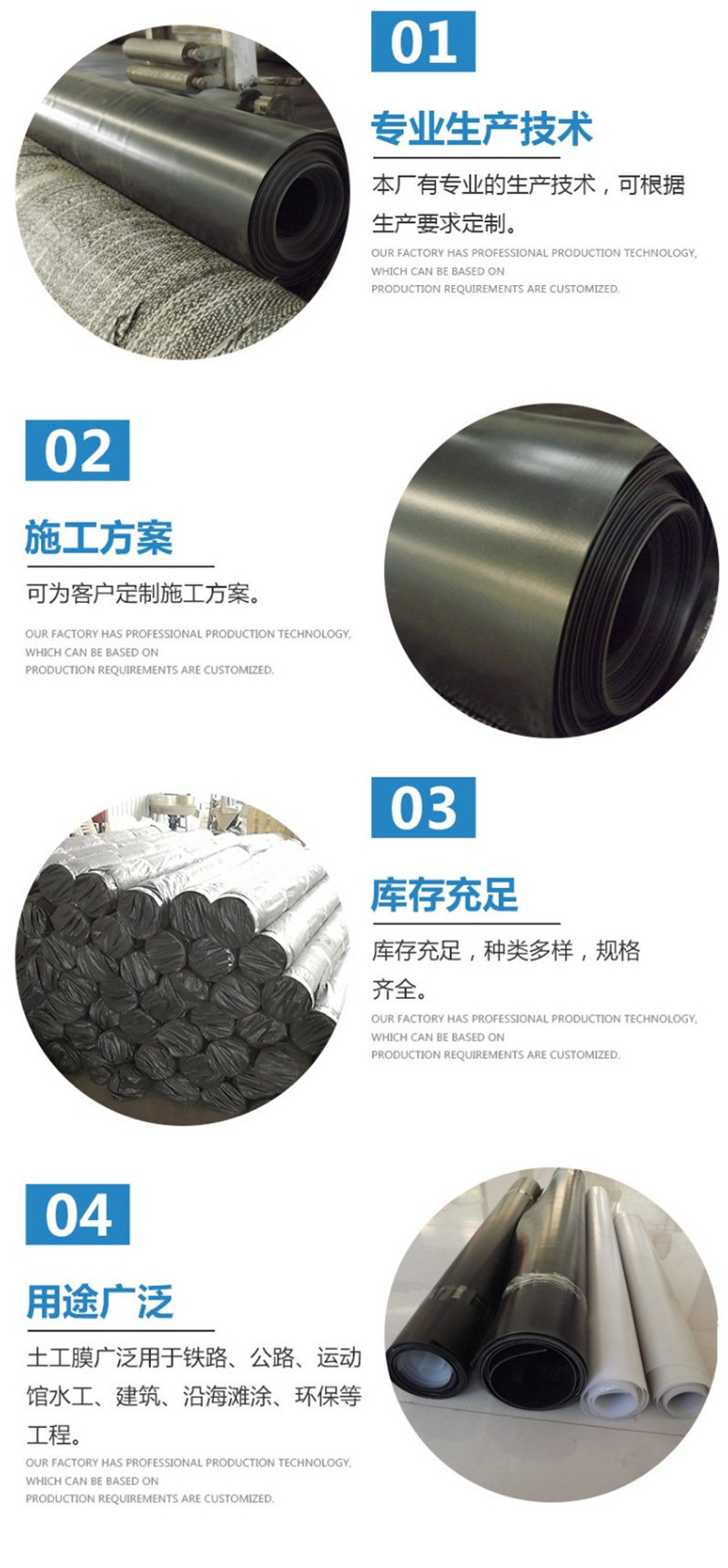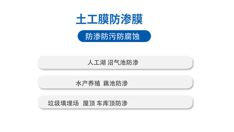 產(chǎn)品介紹: 防滲復(fù)合土工膜:復(fù)合土工膜是用土工織物與土工膜復(fù)合而成的不透水材料,它主要用于防滲,復(fù)合土工膜分為一布一膜和兩布一膜,抗拉、抗撕裂、頂破等物理力學(xué)性能指